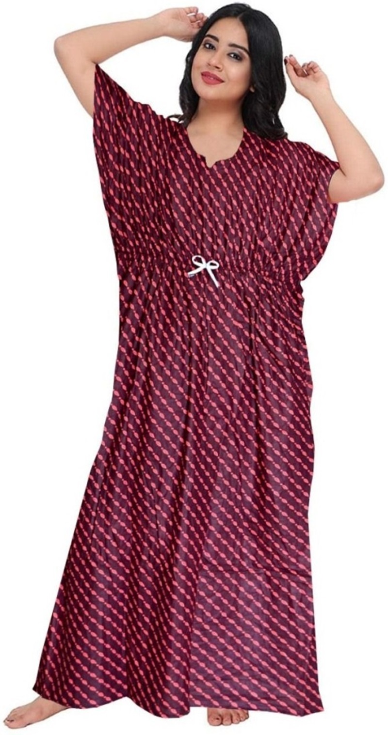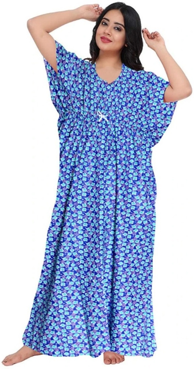 Night dress, WomenCotton Nighty for Women || Long Length Printed Nighty/Maxi/Night Gown/Night Dress/Nightwear Inner & Sleepwear for Women’s (Combo Pack of 2) (DSMF133-Nighty (P2)Blue Maroon)