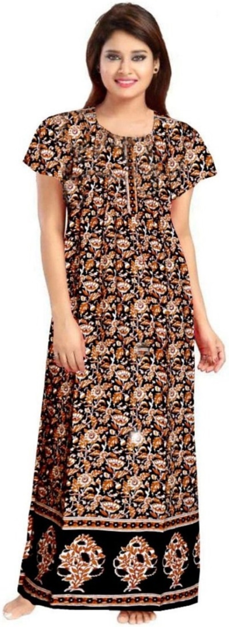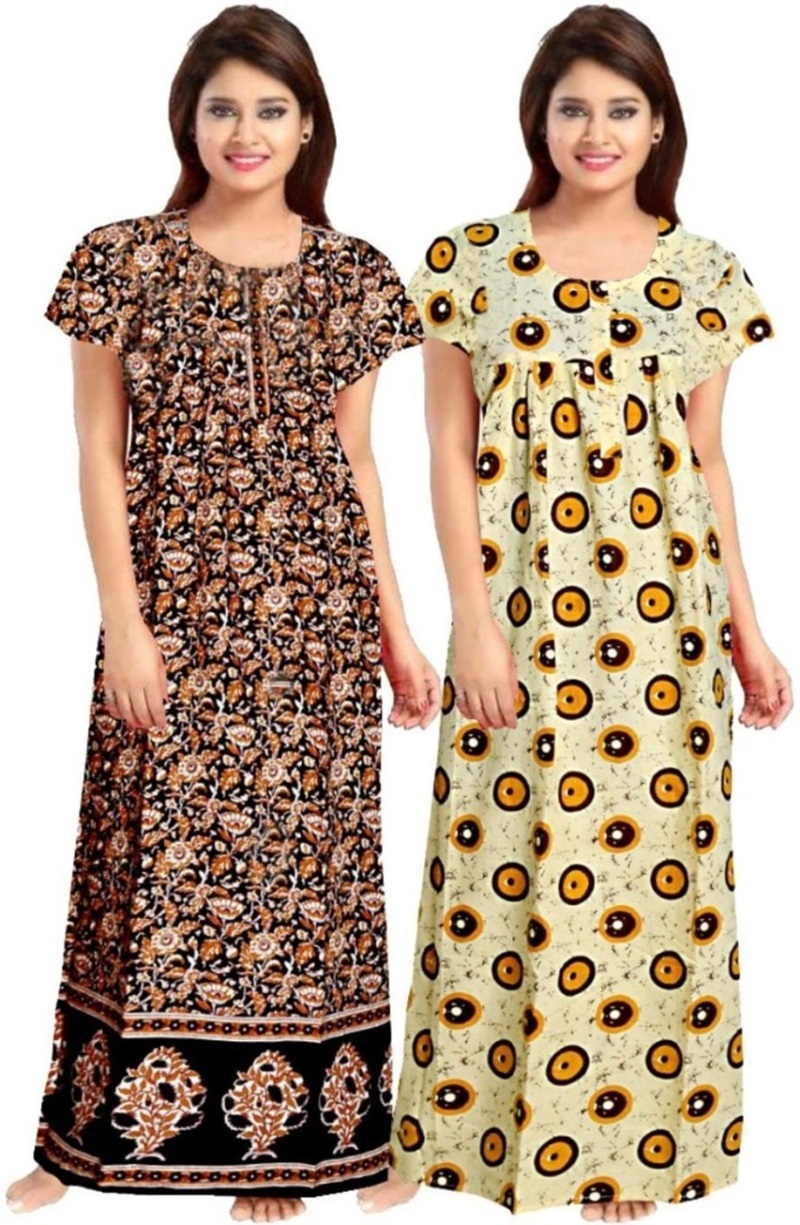Night dress, WomenCotton Nighty for Women || Long Length Printed Nighty/Maxi/Night Gown/Night Dress/Nightwear Inner & Sleepwear for Women’s (Combo Pack of 2) (DSMF191-Nighty (P2)Brown Yellow)