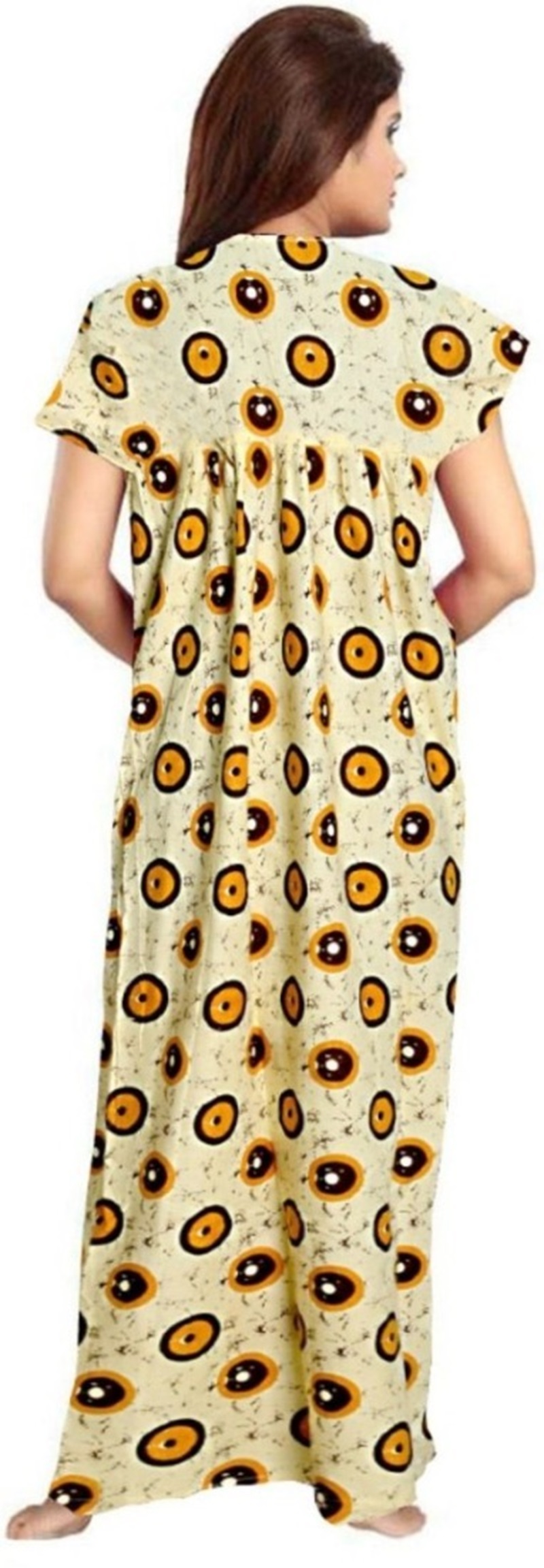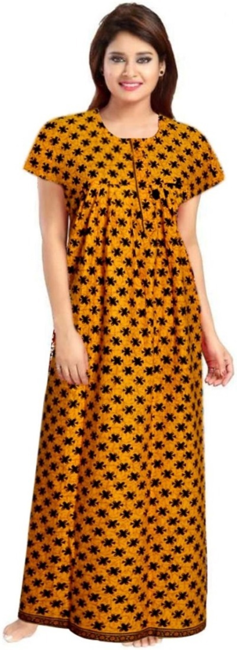 Cotton Nighty for Women || Long Length Printed Nighty/Maxi/Night Gown/Night Dress/Nightwear Inner & Sleepwear for Women’s (Combo Pack of 2) (DSMF167-Nighty (P2)Black Yellow)