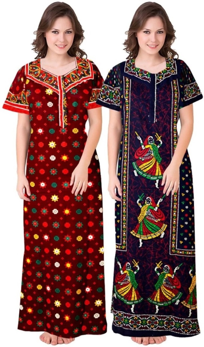 Night dress, WomenCotton Nighty for Women || Long Length Printed Nighty/Maxi/Night Gown/Night Dress/Nightwear Inner & Sleepwear for Women’s (Combo Pack of 2) (DSMF236-Nighty (P2)Maroon Blue)