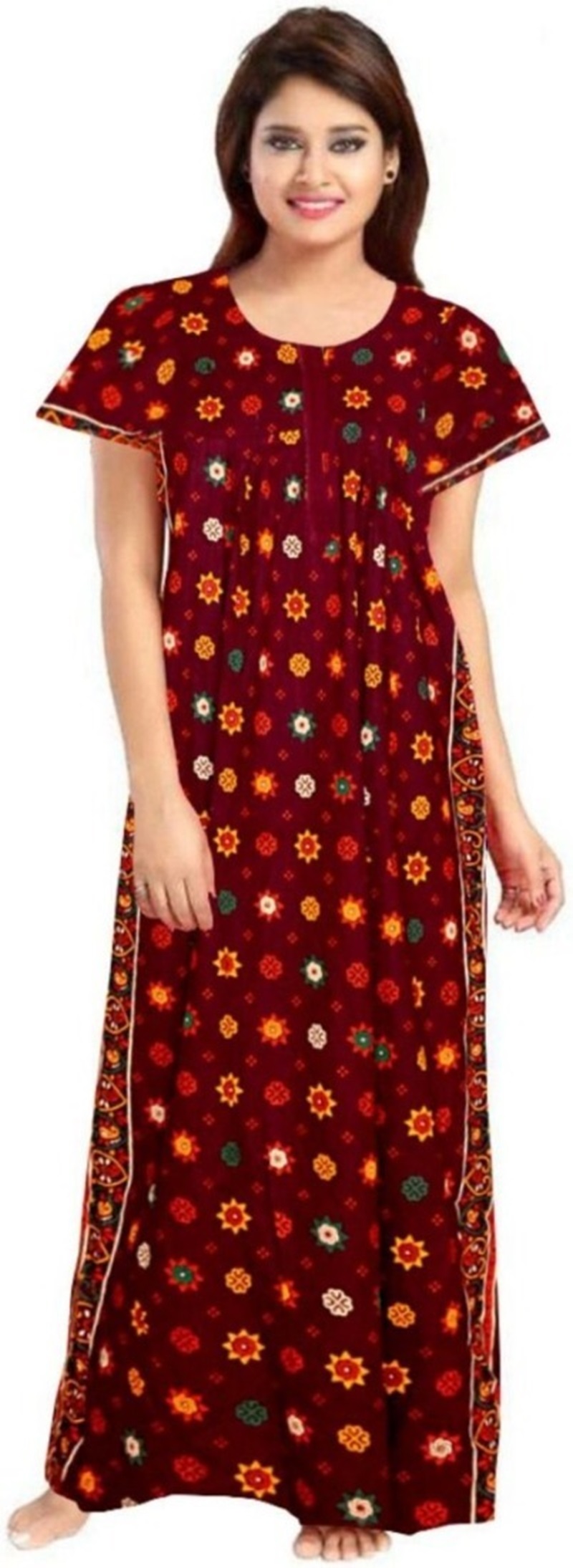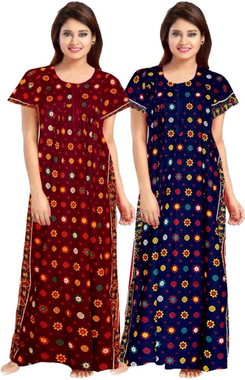 Cotton Nighty for Women || Long Length Printed Nighty/Maxi/Night Gown/Night Dress/Nightwear Inner & Sleepwear for Women’s (Combo Pack of 2) (DSMF229-Nighty (P2)Maroon Blue)