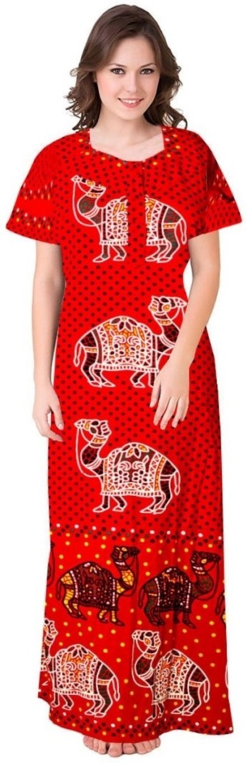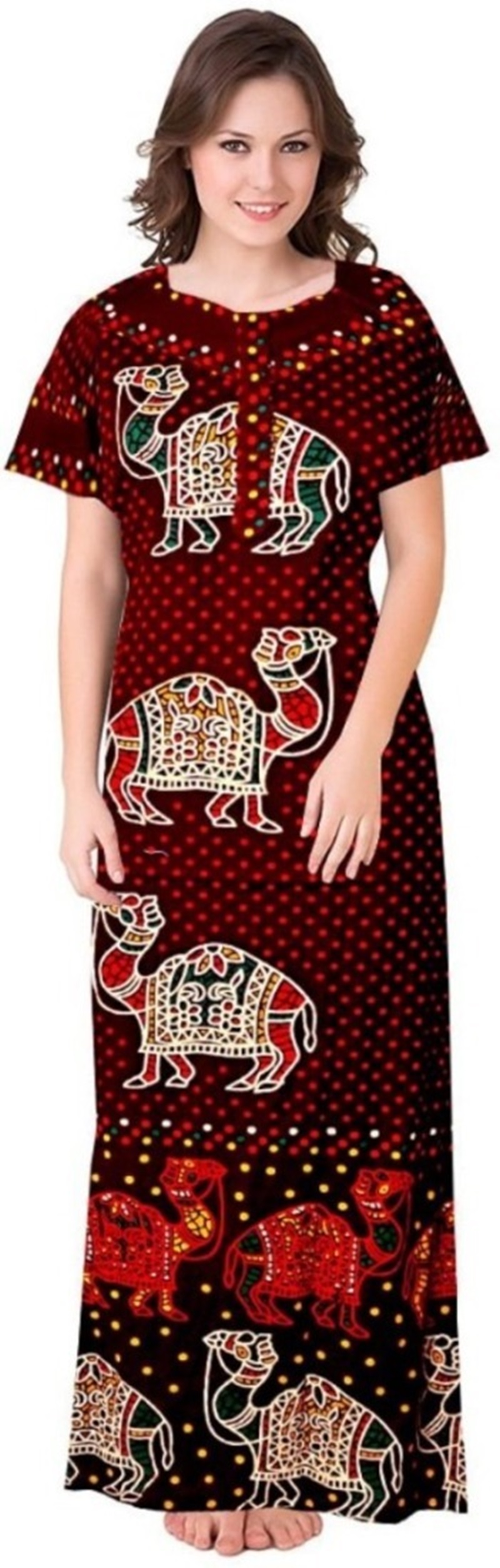 Night dress, WomenCotton Nighty for Women || Long Length Printed Nighty/Maxi/Night Gown/Night Dress/Nightwear Inner & Sleepwear for Women’s (Combo Pack of 2) (DSMF235-Nighty (P2)Maroon Red)