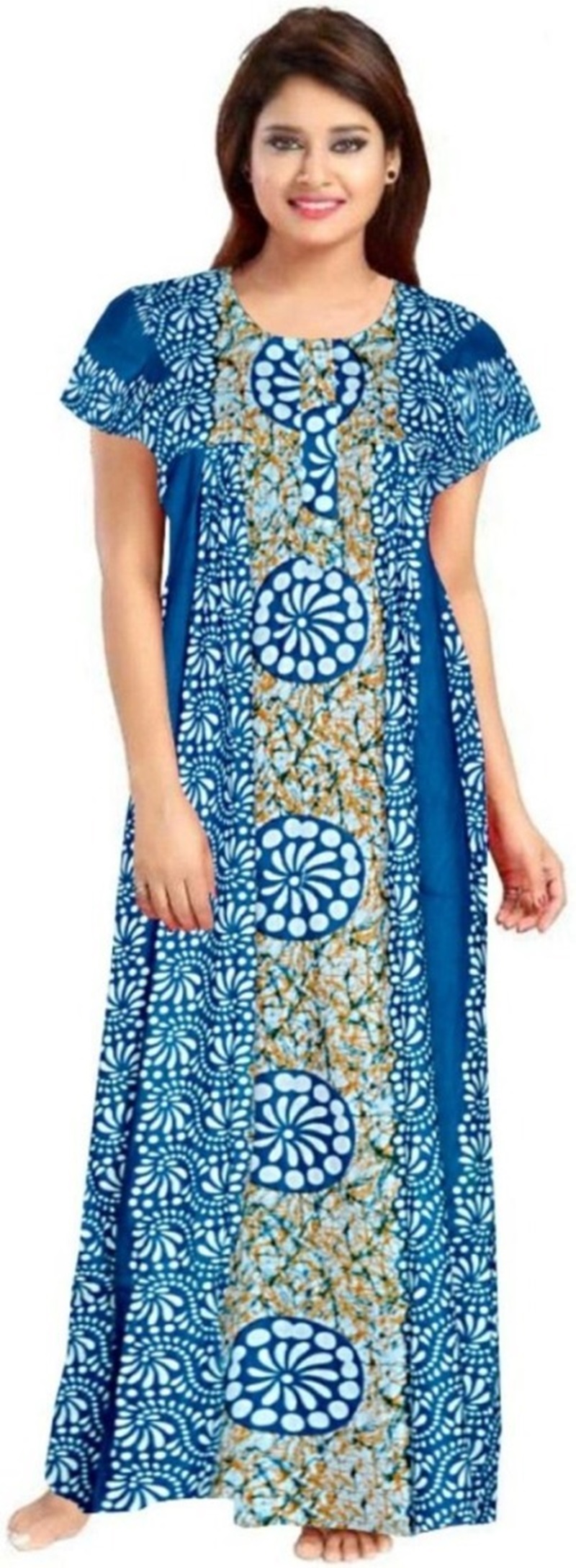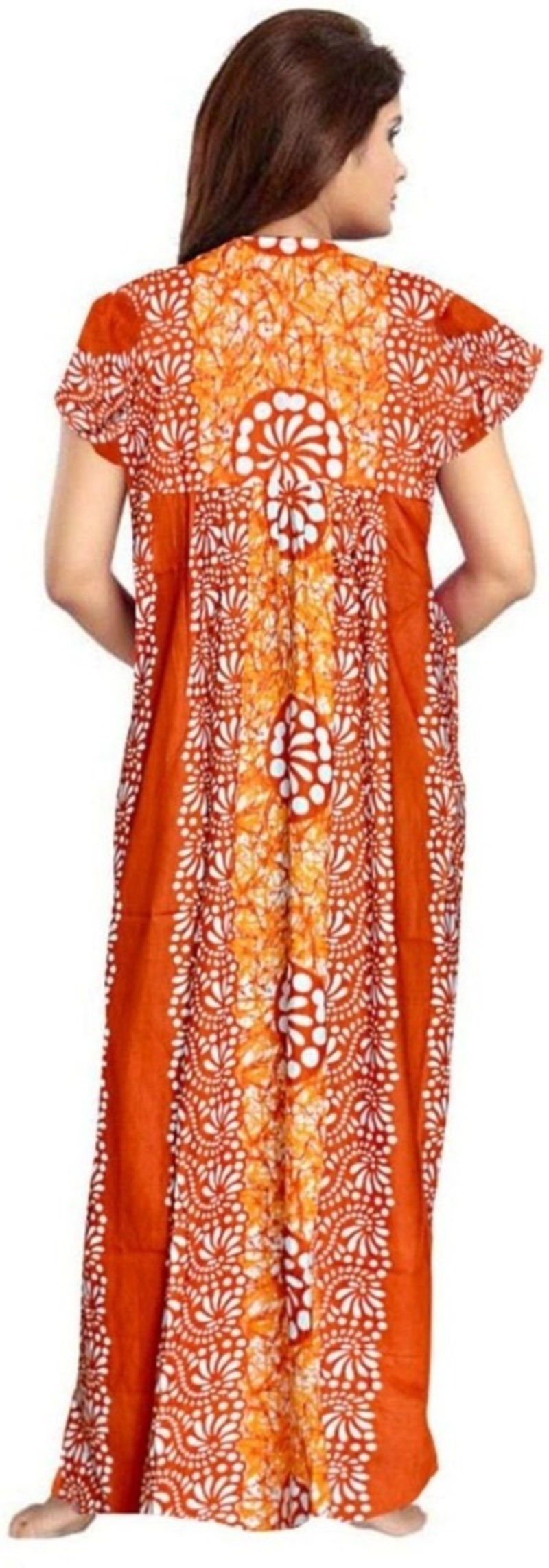 Night dress, WomenCotton Nighty for Women || Long Length Printed Nighty/Maxi/Night Gown/Night Dress/Nightwear Inner & Sleepwear for Women’s (Combo Pack of 2) (DSMF199-Nighty (P2)Orange Blue)