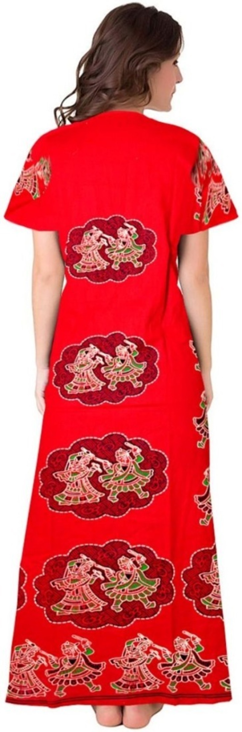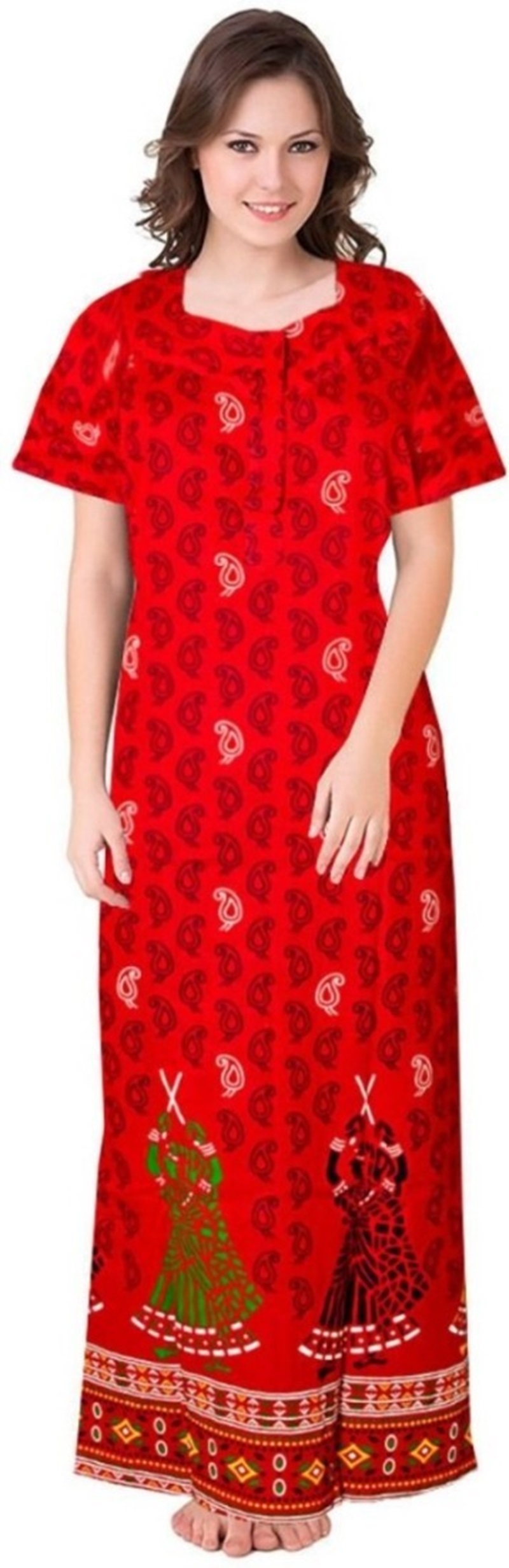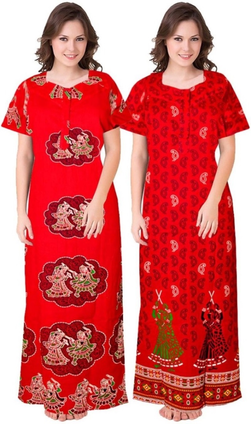 Cotton Nighty for Women || Long Length Printed Nighty/Maxi/Night Gown/Night Dress/Nightwear Inner & Sleepwear for Women’s (Combo Pack of 2) (DSMF237-Nighty (P2)Red Multicolor)