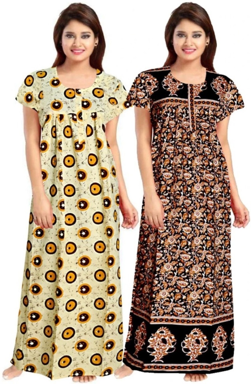 Night dress, WomenCotton Nighty for Women || Long Length Printed Nighty/Maxi/Night Gown/Night Dress/Nightwear Inner & Sleepwear for Women’s (Combo Pack of 2) (DSMF187-Nighty (P2)Yellow Black)