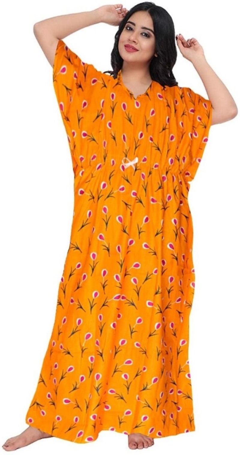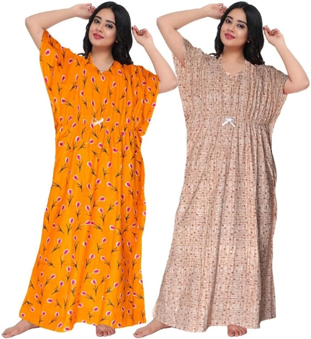 Night dress, WomenCotton Nighty for Women || Long Length Printed Nighty/Maxi/Night Gown/Night Dress/Nightwear Inner & Sleepwear for Women’s (Combo Pack of 2) (DSMF131-Nighty (P2)Yellow Grey)