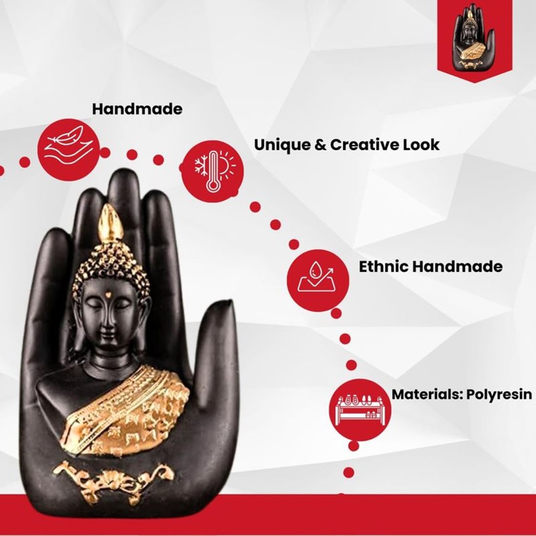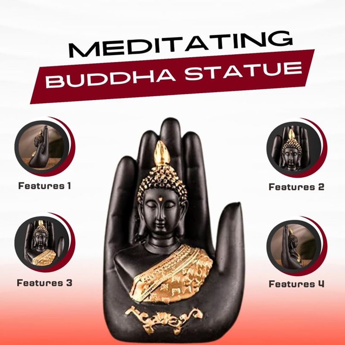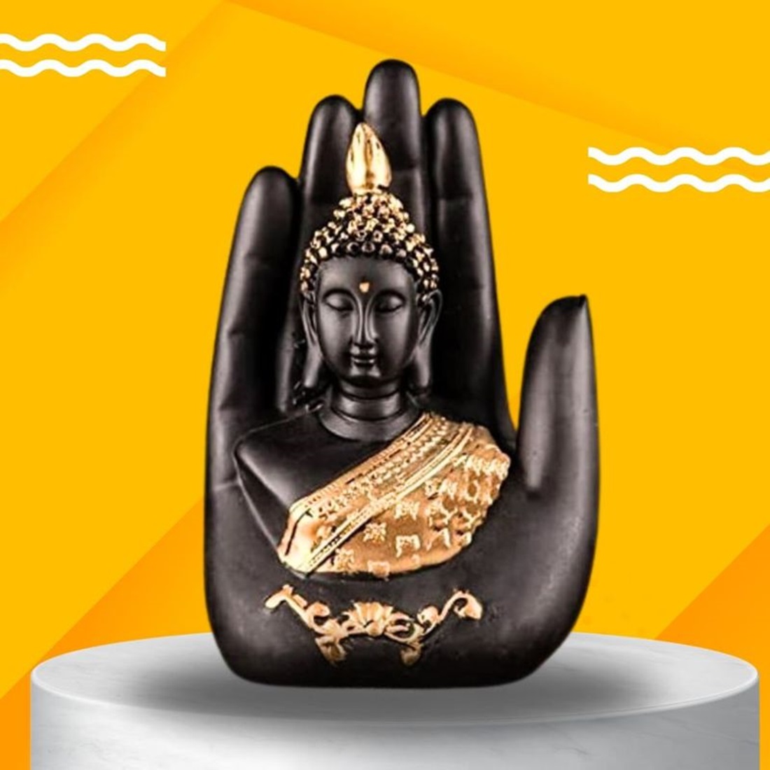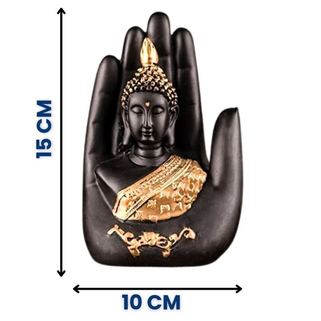 1) Exquisite Home Decor: Add a touch of serenity and elegance to your home with this beautiful Black color Palm Buddha Idol. Handcrafted Perfection: Each statue is meticulously handcrafted to ensure intricate detailing and high-quality craftsmanship.