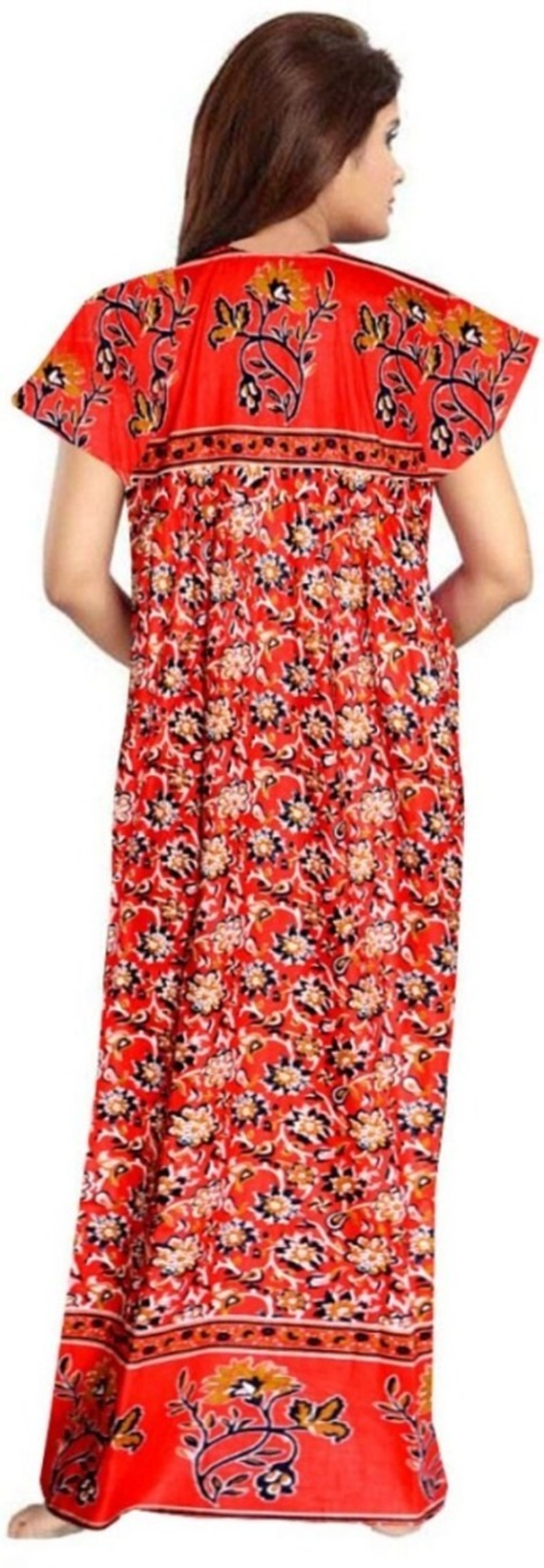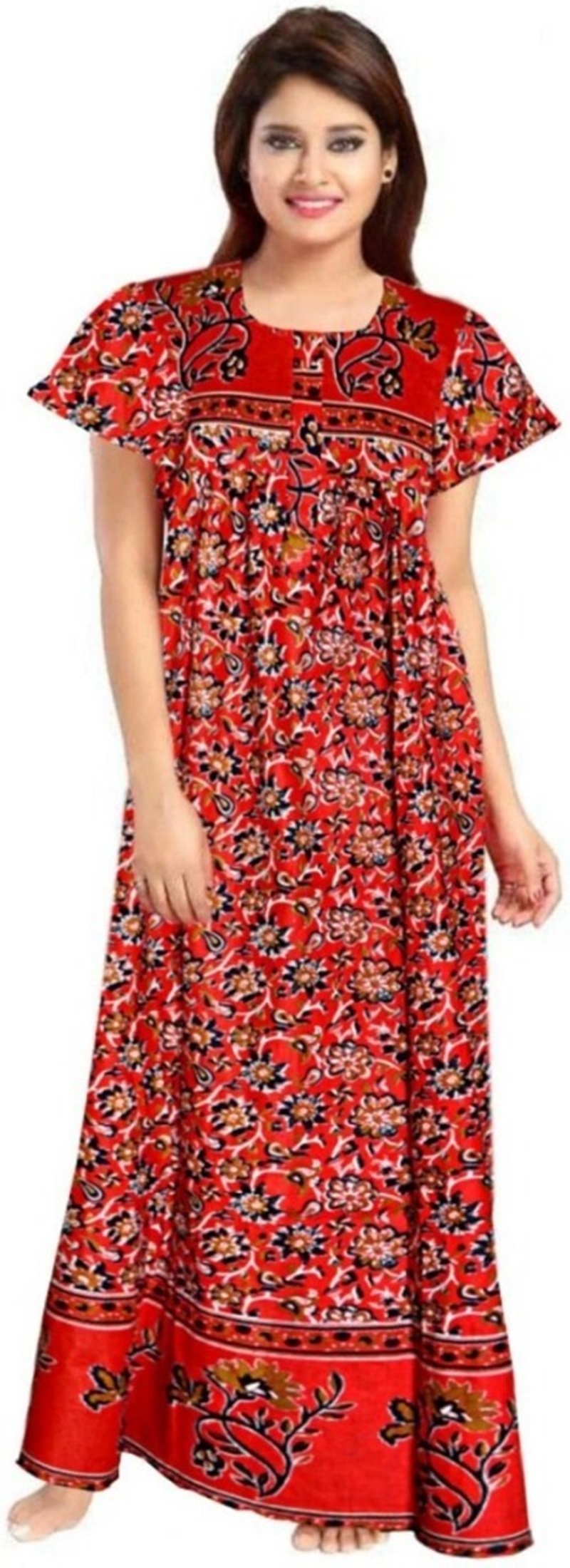 Cotton Nighty for Women || Long Length Printed Nighty/Maxi/Night Gown/Night Dress/Nightwear Inner & Sleepwear for Women’s (Combo Pack of 2) (DSMF073-Nighty (P2)Red Black)