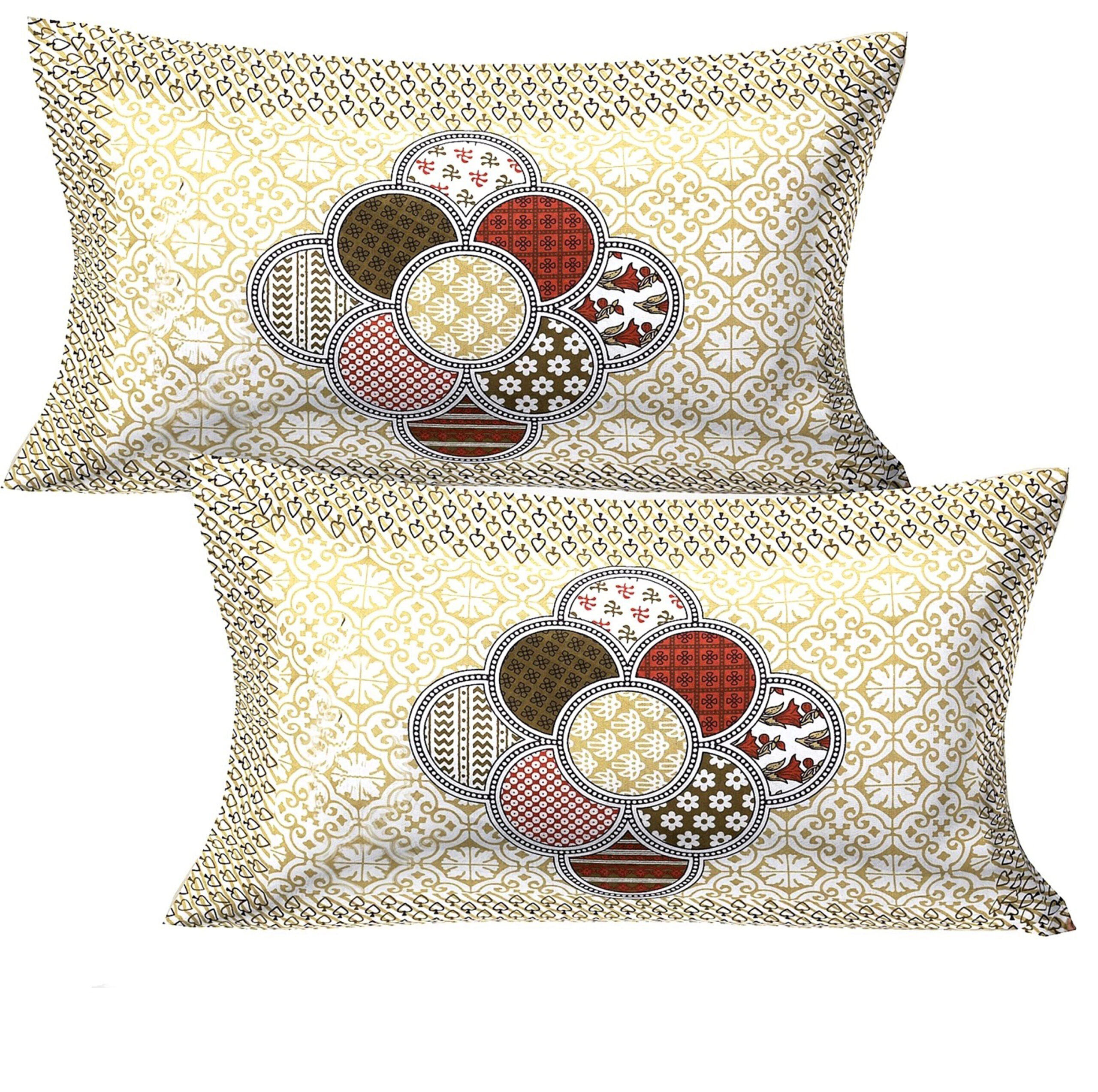 Rajasthani Jaipuri Traditional Sanganeri Mandala Print 100% Cotton Double Size Bedsheet with Two Pillow Covers (Yellow) (MD1026-BST DBL Mandala_Yellow)
