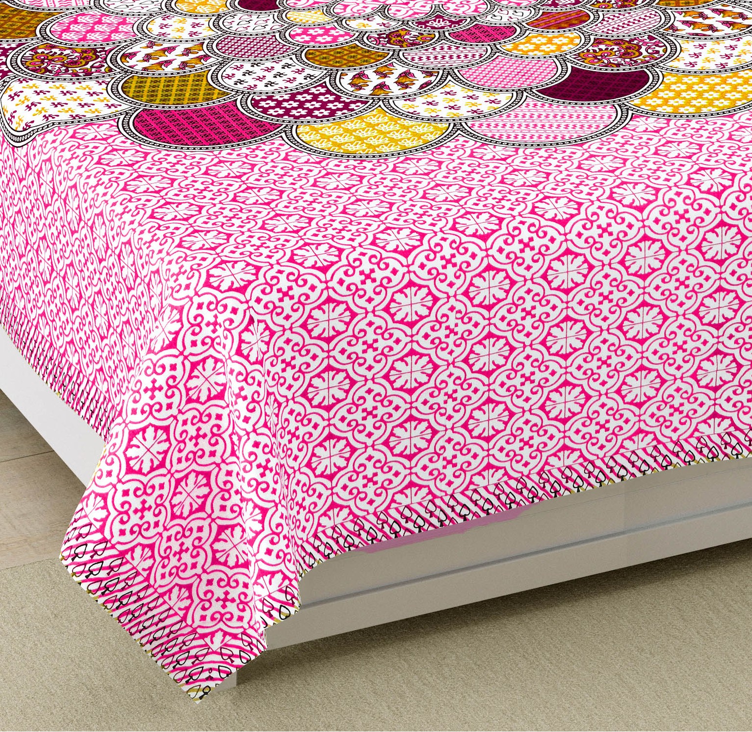 Rajasthani Jaipuri Traditional Sanganeri Mandala Print 100% Cotton Single Size Bedsheet with one Pillow Covers (Pink) (MD1004-BST SIN-Mandala Pink)