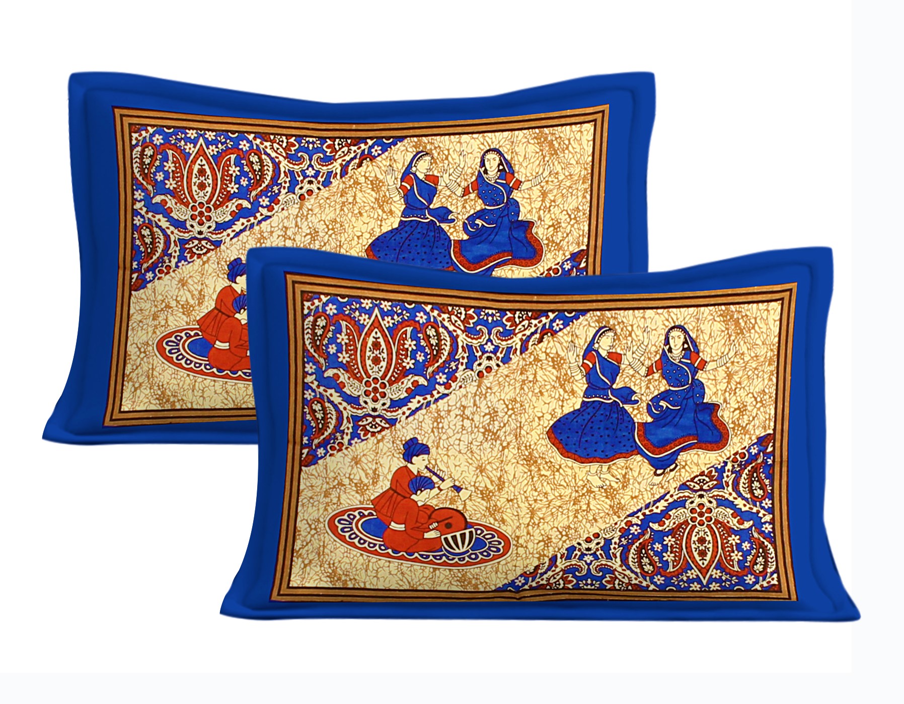 Rajasthani Jaipuri Traditional Sanganeri Rajasthani Print 100% Cotton Double Size Bedsheet with Two Pillow Covers (Blue) (MD1028-BST DBL Rajasthani_Blue)