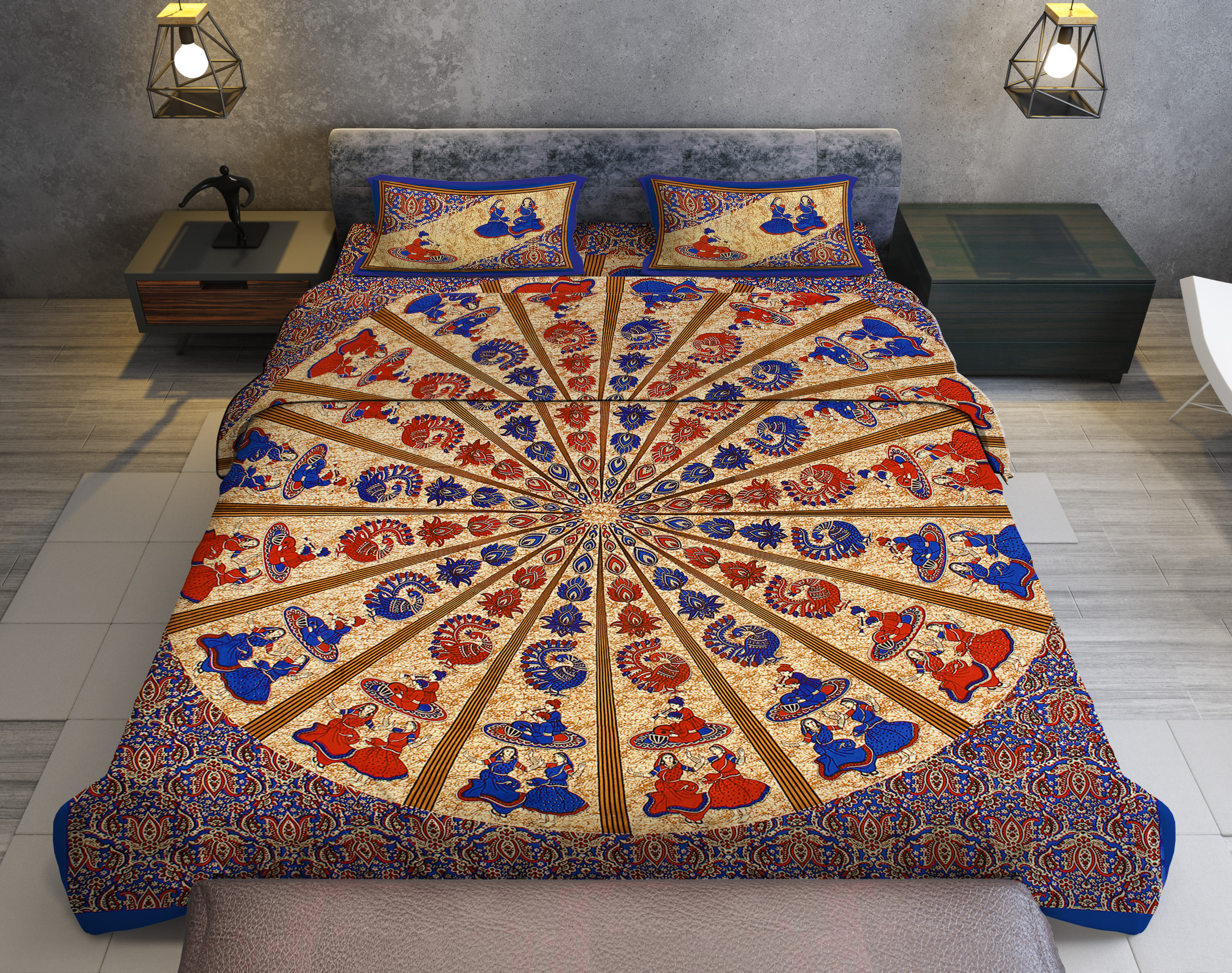 Make the best of your bedroom with this finest quality jaipuri bedsheets from the house of Made from 100% cotton fabric, all the bedsheets are hand made in such a way to make sure that your bedroom looks elegant. The cotton fabric makes sure that the bedsheet remains soft and?skin?friendly.