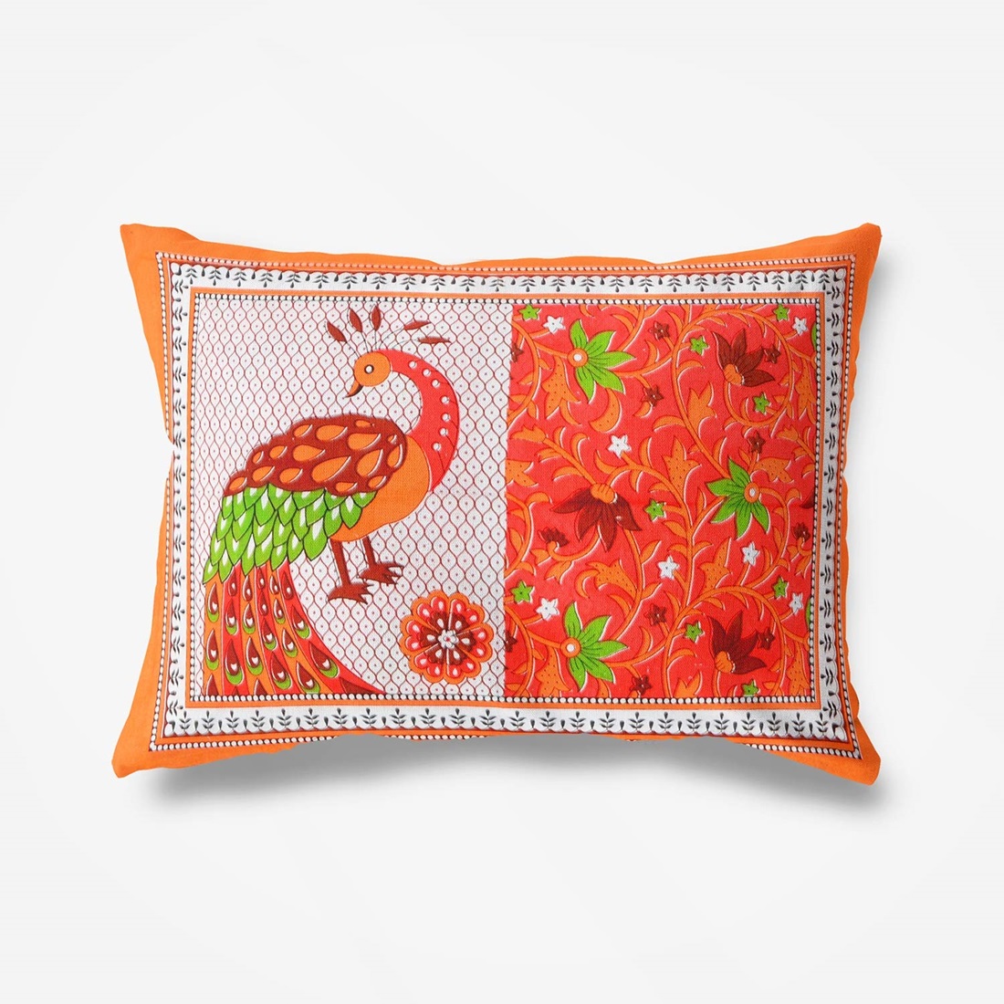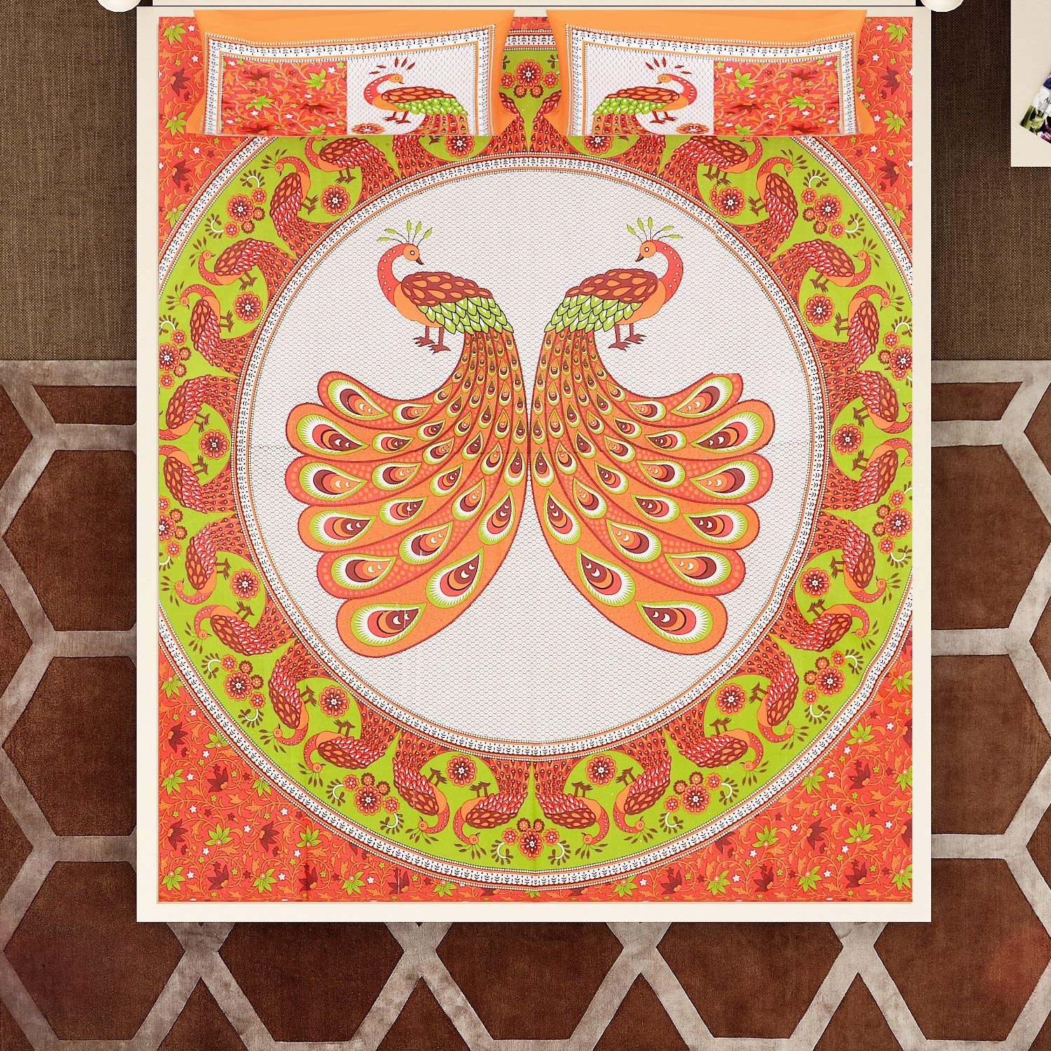 Rajasthani Jaipuri Traditional Sanganeri TedaMorr Print 100% Cotton Double Size Bedsheet with Two Pillow Covers (Orange) (MD1029-BST DBL TedaMorr_Orange)