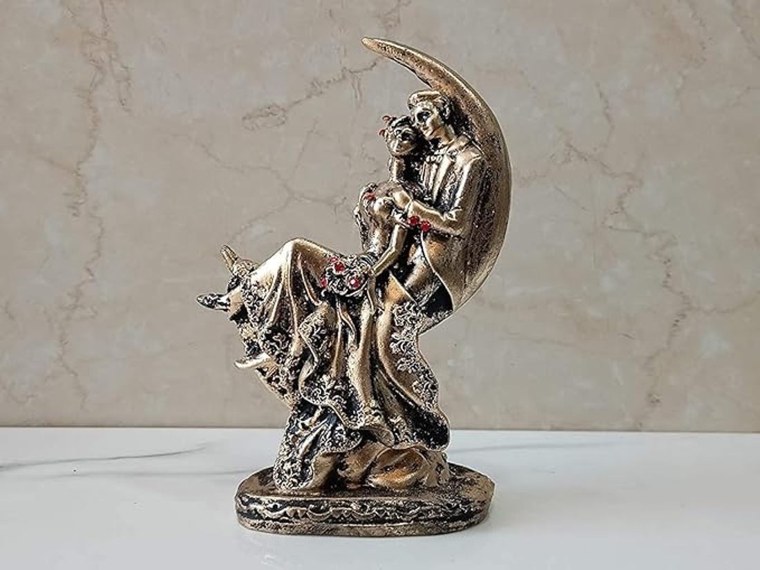 Home & Kitchen, Showpieces & DecorResin Romantic Couple Sitting on Moon Statue Showpiece – Golden, 6.5 x 4.5 x 2 inches – Perfect for Home Decor and Gift Giving (JCHD029-CHAND COUPLE GOLD ANTIQUE_Free)